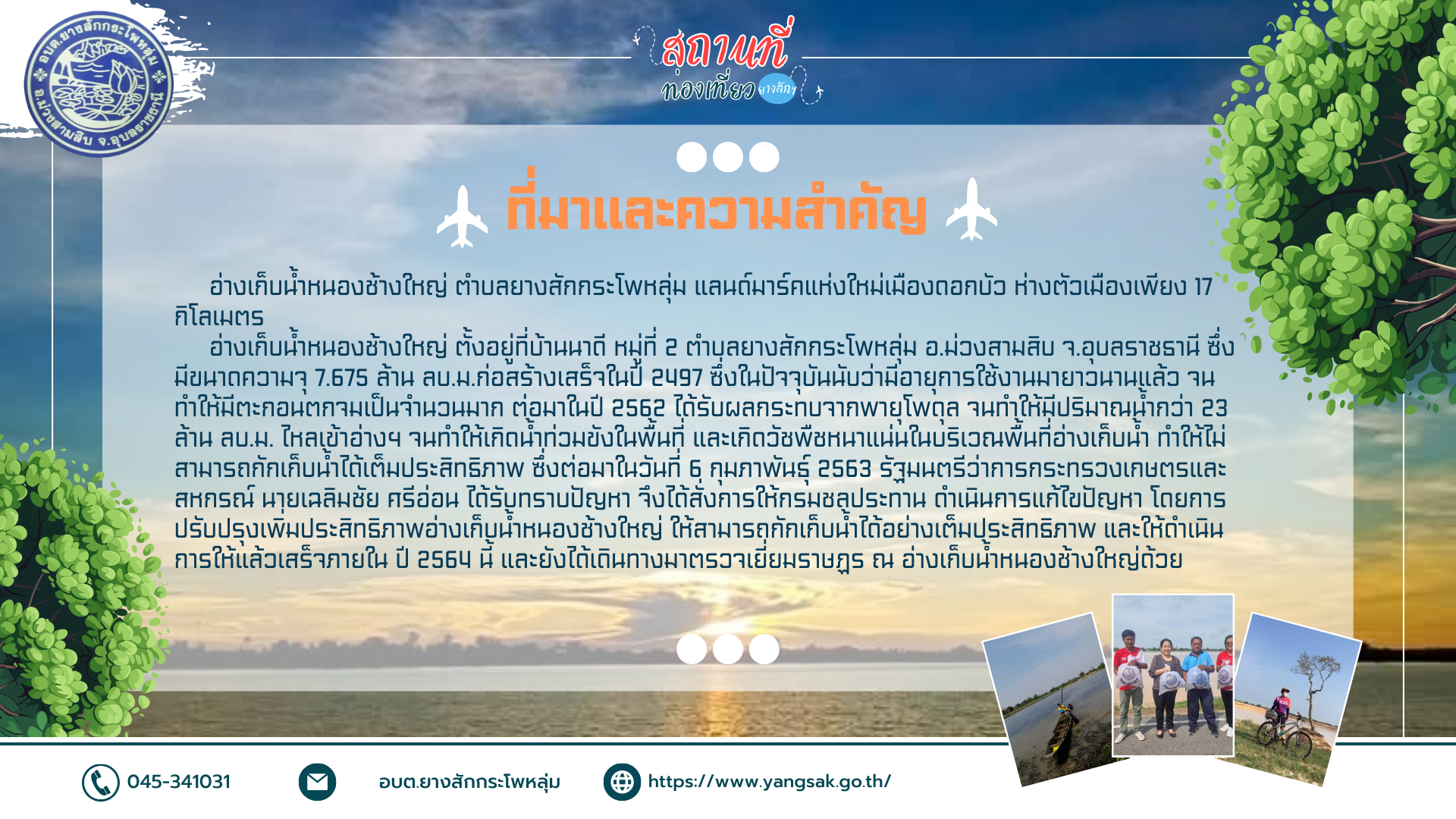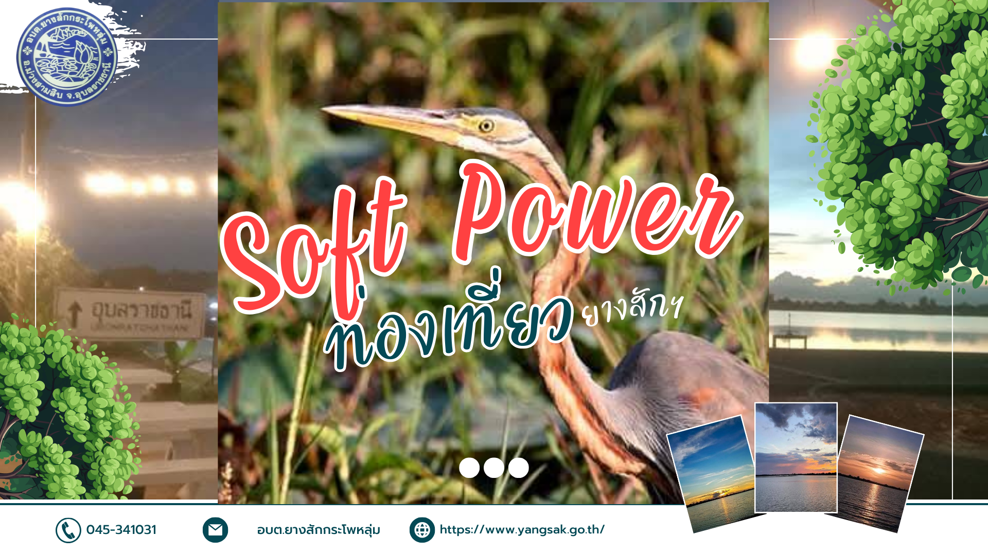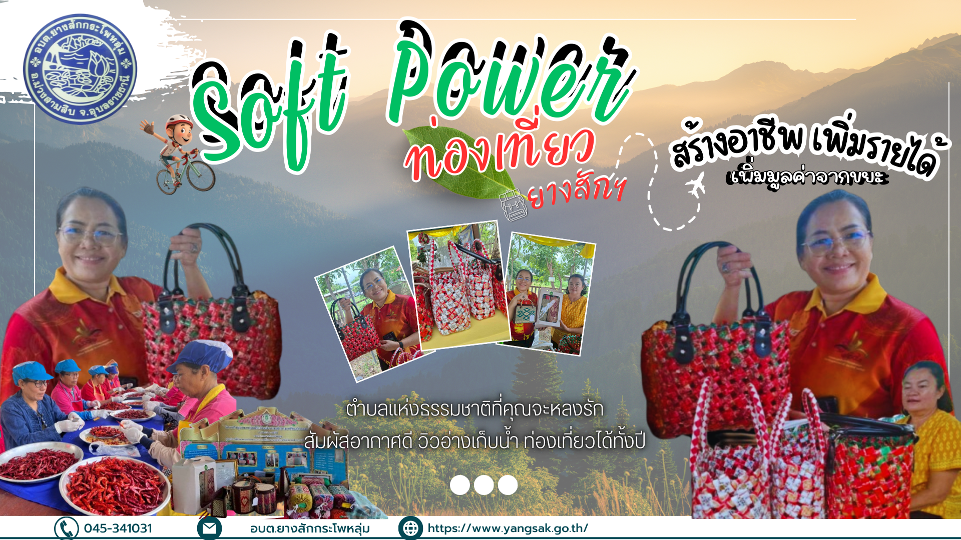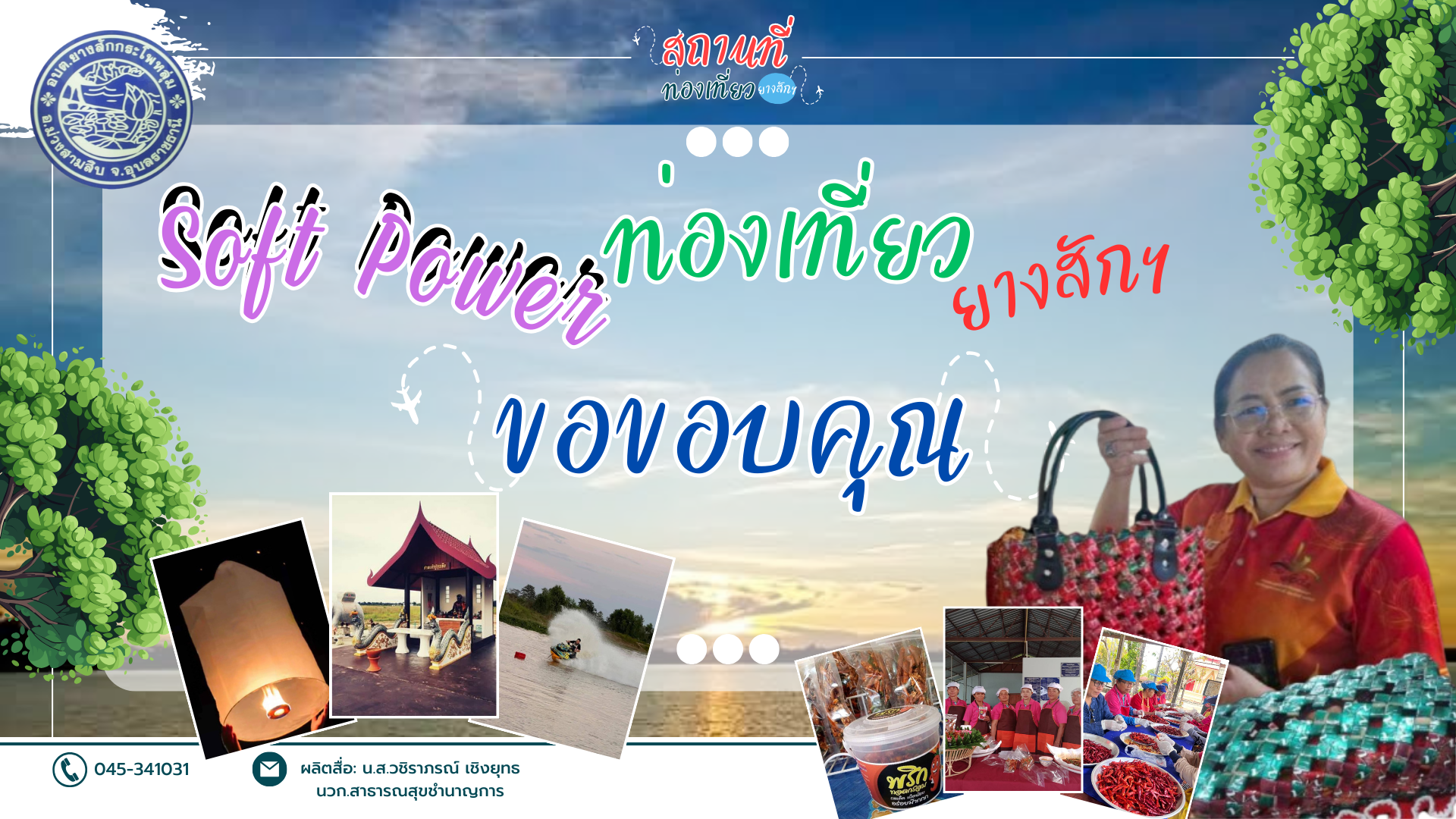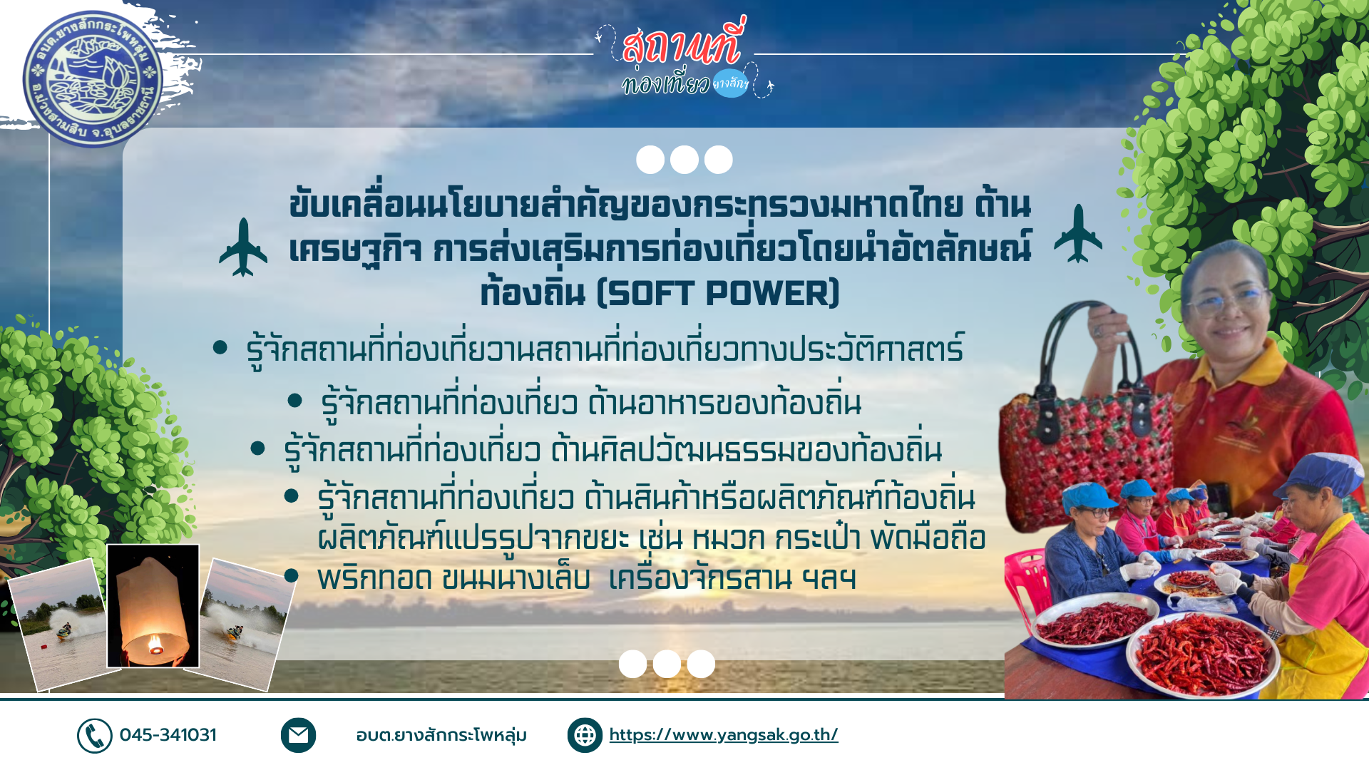 "เชิญท่องเที่ยวยางสัก" Soft Power ปลุกพลังชุมชน สร้างสรรค์อัตลักษณ์ท้องถิ่น สู่การท่องเที่ยวอย่างยั่งยืน องค์การบริหารส่วนตำบลยางสักกระโพหลุ่ม อำเภอม่วงสามสิบ จังหวัดอุบลราชธานี