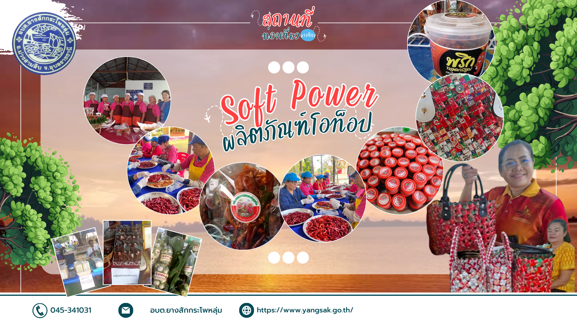 องค์การบริหารส่วนตำบลยางสักกระโพหลุ่ม จังหวัดอุบลราชธานี เปิดตัวโครงการส่งเสริมการท่องเที่ยวชุมชนภายใต้แนวคิด “Soft Power ท่องเที่ยวยางสัก” มุ่งสร้างอาชีพ เพิ่มรายได้ และขับเคลื่อนเศรษฐกิจฐานรากให้เติบโตอย่างมั่นคง โดยนำเสนอเสน่ห์และคุณค่าของวัฒนธรรมท้องถิ่น ผ่านผลิตภัณฑ์ชุมชนที่มีคุณภาพ กิจกรรมท่องเที่ยวที่หลากหลาย และแหล่งท่องเที่ยวอันงดงาม เพื่อสร้างประสบการณ์ที่น่าประทับใจให้แก่นักท่องเที่ยว